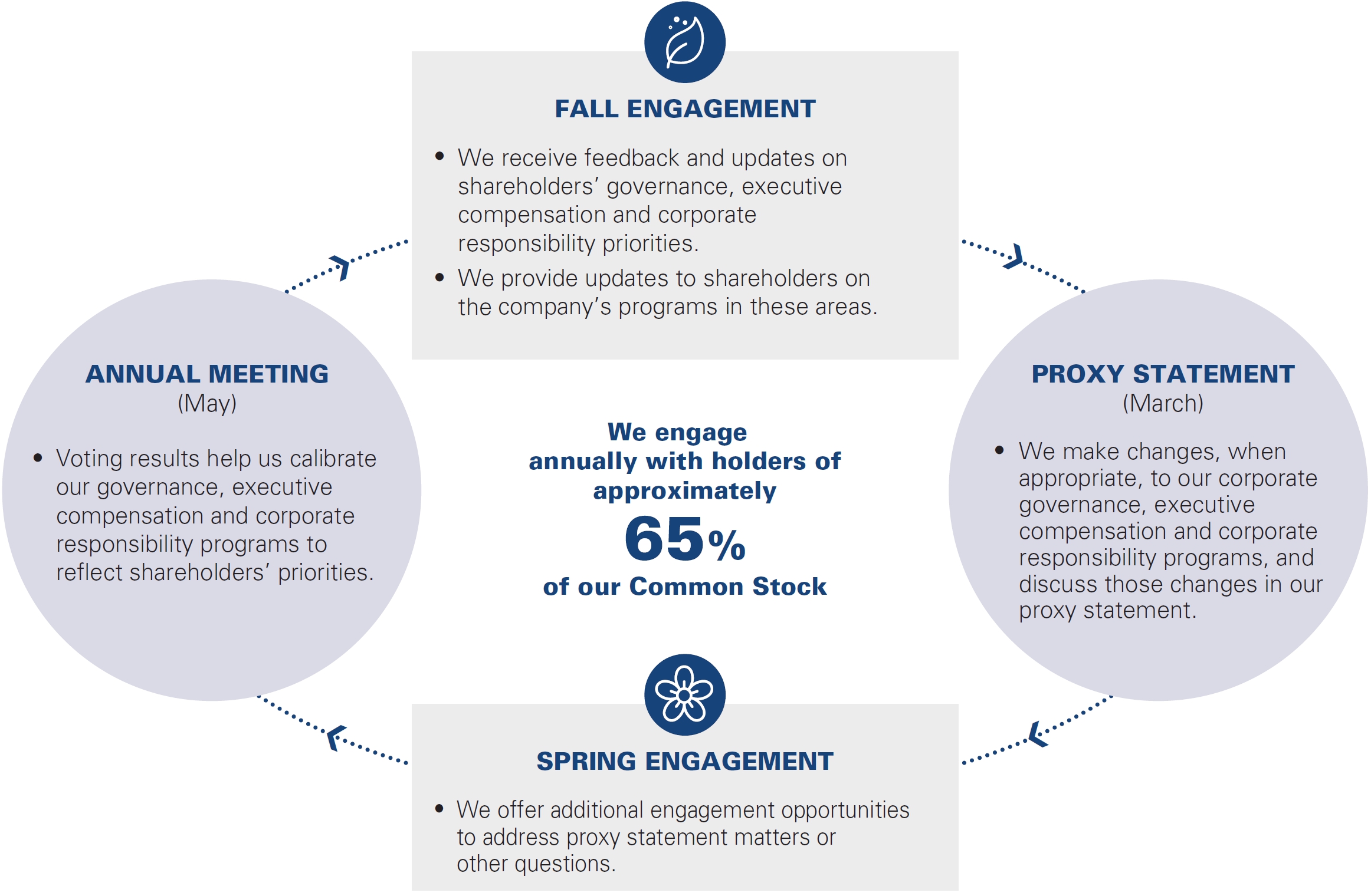 | 在2024年,我们还继续与我们的投资者进行定期对话,以更好地了解股东的观点。在与投资者的这些对话中,我们讨论了公司业绩、公司治理、可持续发展和高管薪酬等话题。我们重视股东的这一投入,并鼓励您继续与我们接触。 | ||