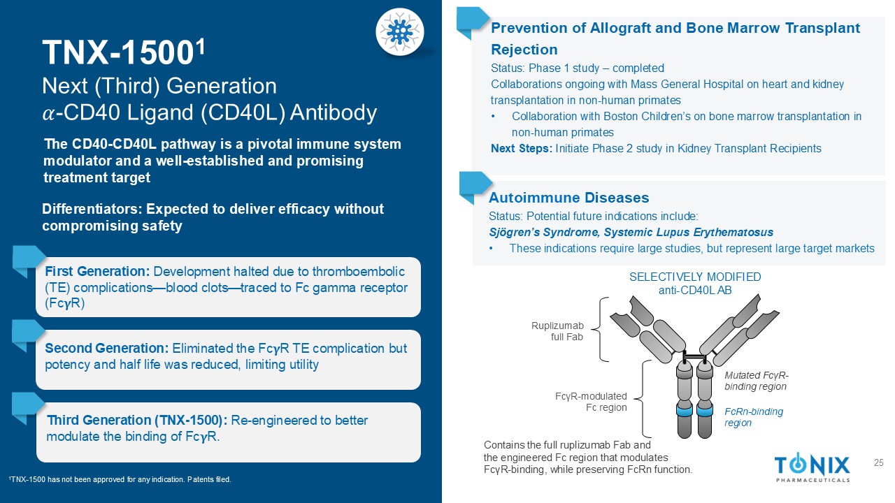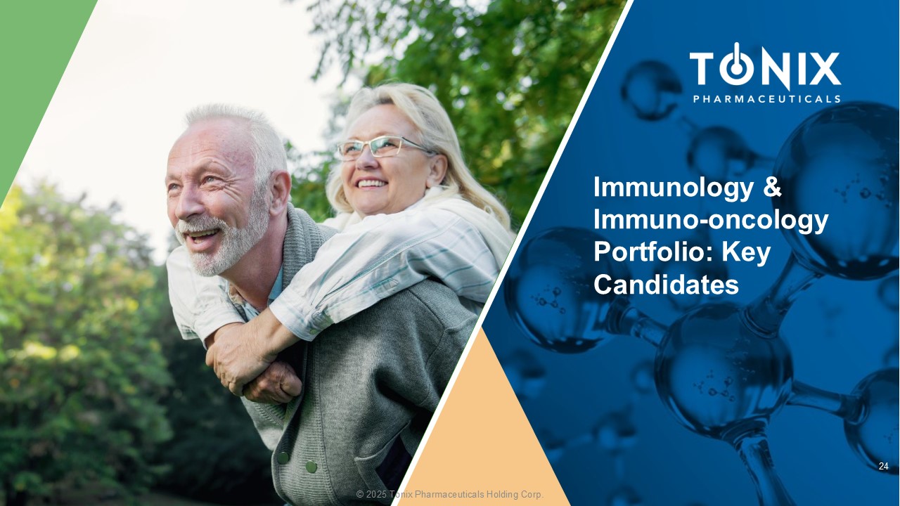 ©2025 Tonix Pharmaceuticals Holding Corp. Immunology & Immuno-肿瘤学产品组合:关键候选者24