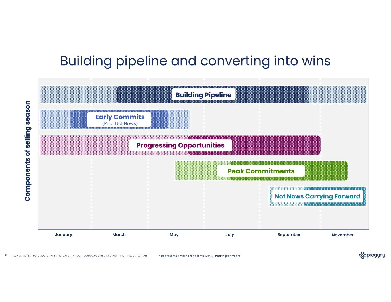 P L E A S E R E F E R T O S L I D E 2 F O R T H E S A F E H A R B O R L A N G U A G E R E A R D I N G T H I S P R E S E N T A T I O N31 *代表1/1健康计划年建设管道客户的时间线和转换为胜利1月3月5月7月9月11月C om po ne nt s of se lli ng s ea so n building pipeline progressing opportunities peak commitments not nows carrying forward early commits(prior not nows)