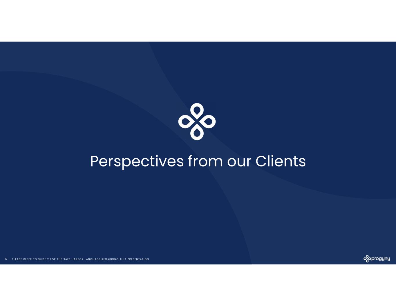 P L E A S E R E F E R T O S L I D E 2 F O R T H E S A F E H A R B O R L A N G U A G E R G A R D I N G T H I S P R E S E N T A T I O N37 Perspectives from our clients