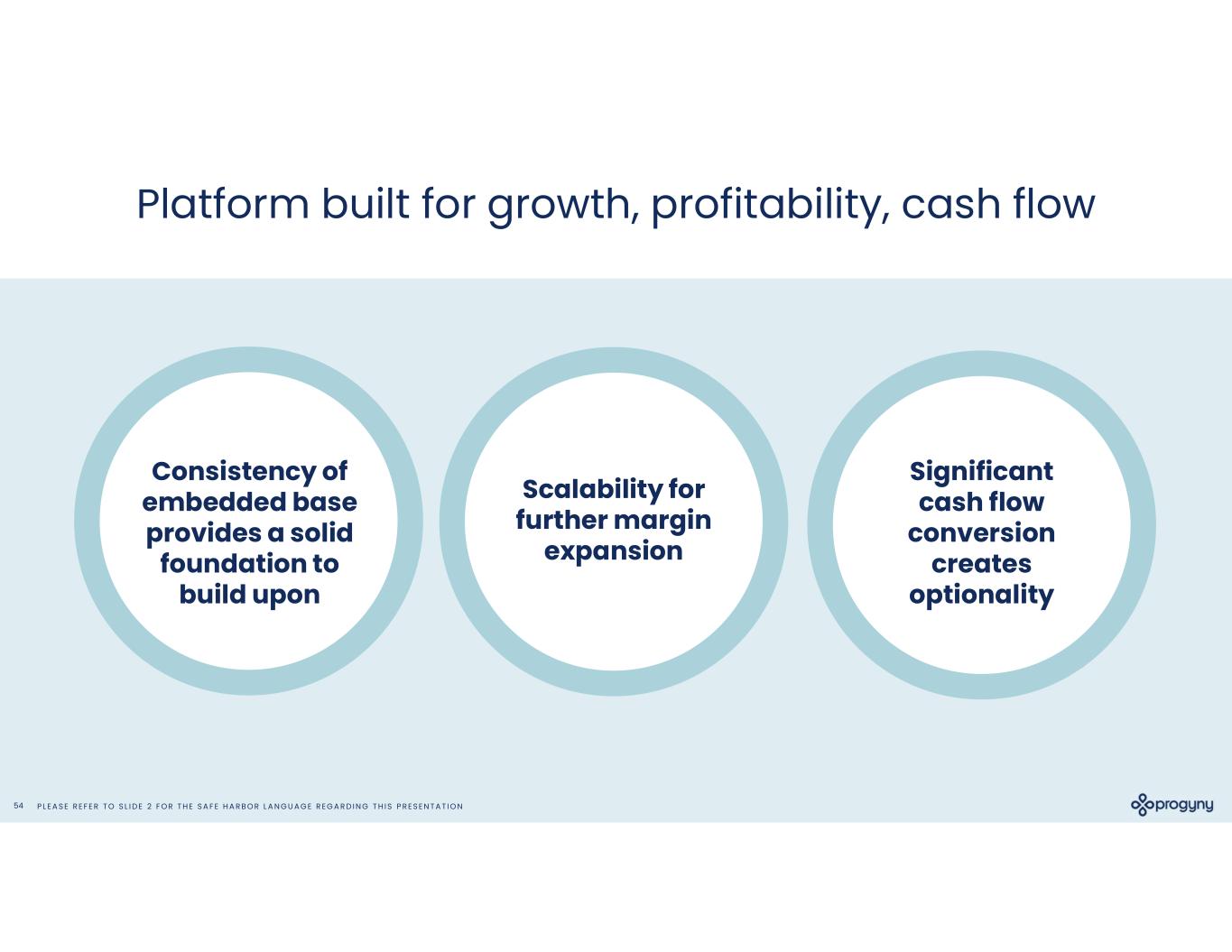 P L E A S E R E F E R T O S L I D E 2 F O R T H E S A F E H A R B O R L A N G U A G E R E G A R D I N G T H I S P R E N T A T I O N54为增长、盈利能力、现金流一致性而构建的平台为进一步扩大利润率提供了坚实的基础可扩展性显着的现金流转换创造了可选性