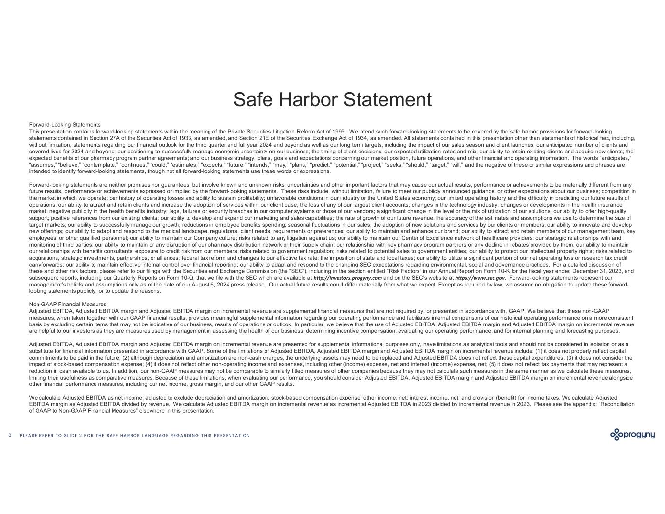 PL E A S E R E F E R T O S L I D E 2 F O R T H E S A F E H A R B O R L A N G U A G E R E G A R D I N G T H I S P R E N T A T I O N1 Progyny投资者日2024年8月