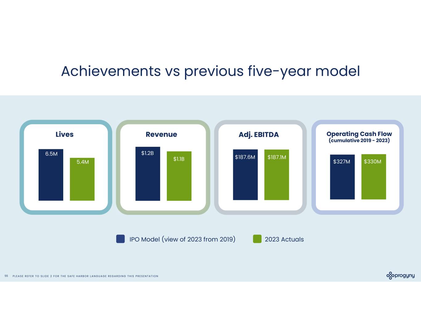 P L E A S E R E F E R T O S L I D E 2 F O R T H E S A F E H A R B O R L A N G U A G E R E G A R D I N G T H I S P R E N T A T I O N55成就vs先前的五年模型IPO模型(从2019年起看2023年)2023年实际收入$ 1.2B $ 1.1b Adj. EBITDA $ 1.876m $ 1.871m经营现金流(累计2019-2023年)$ 3.27亿$ 3.30亿活650万5.4m