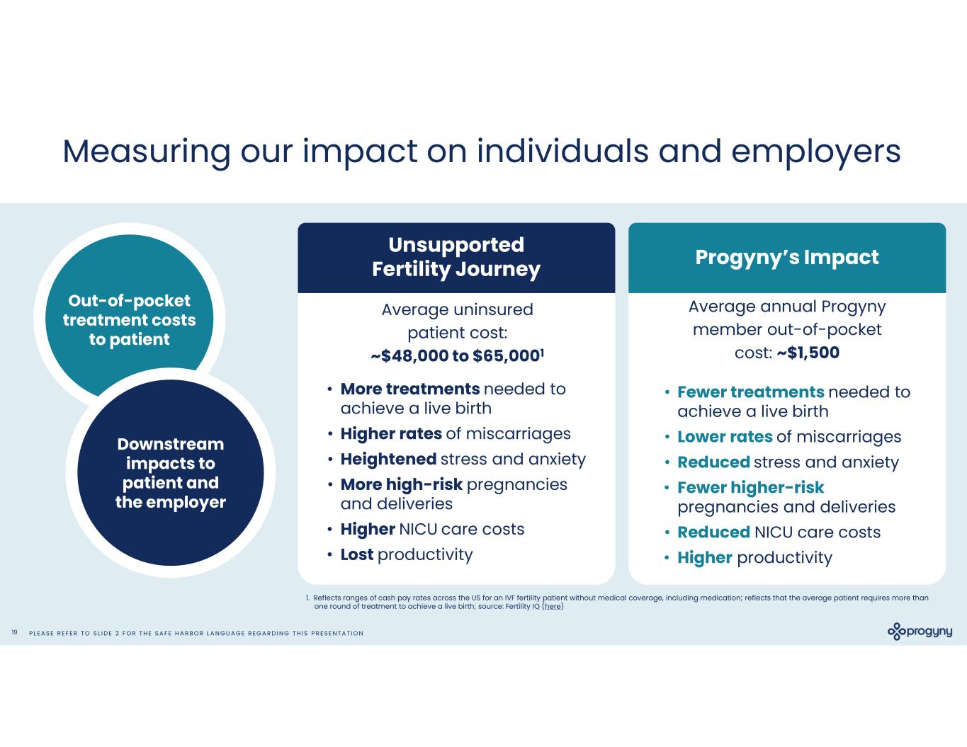 P L E A S E R E F E R T O S L I D E 2 F O R T E S A F E H A R B O R L A N G U A G E R G A R D I N G T H I S P R E S E N T A T I O N18在正确的时间为每位会员提供正确的解决方案,礼宾支持1:1,并为会员的整个旅程进行匹配,与强大的数字经验相结合全国顶级生育和妇女健康专家的专业化和管理网络公平福利设计,可实现覆盖和获得循证护理和RX,为每个成员提供个人服务提供优越的结果是在我们的DNA数据驱动的护理中,能够实现主动的成员外联,客户级报告对成员结果具有独特的可见性