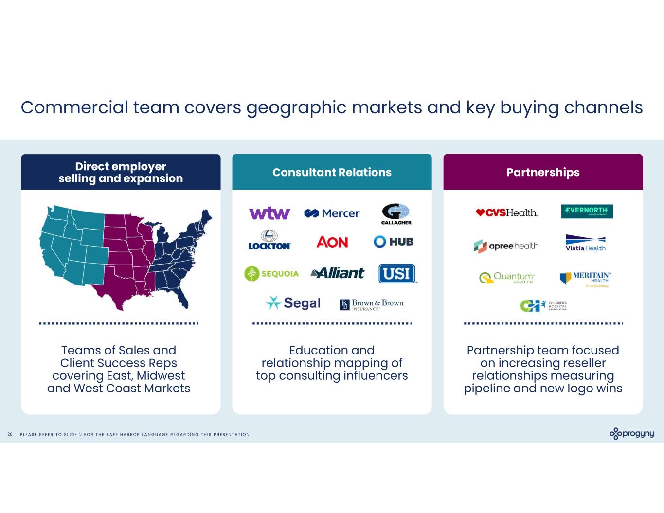 P L E A S E R E F E R T O S L I D E 2 F O R T H E S A F E H A R B O R L A N G U A G E R E G A R D I N G T H I S P R E N T A T I O N28商业团队覆盖地理市场和主要购买渠道直接雇主销售和扩展顾问关系伙伴关系销售和客户成功代表团队覆盖东部,中西部和西海岸市场教育和顶级咨询影响者的关系映射伙伴关系团队专注于增加经销商关系,衡量管道和新标志的胜利
