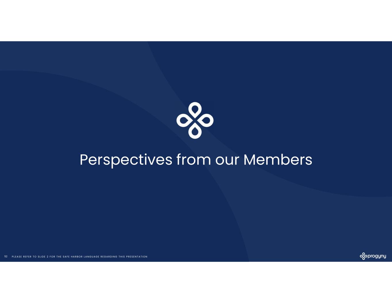 P L E A S E R E F E R T O S L I D E 2 F O R T H E S A F E H A R B O R L A N G U A G E R G A R D I N G T H I S P R E N T A T I O N52 Perspectives from our members