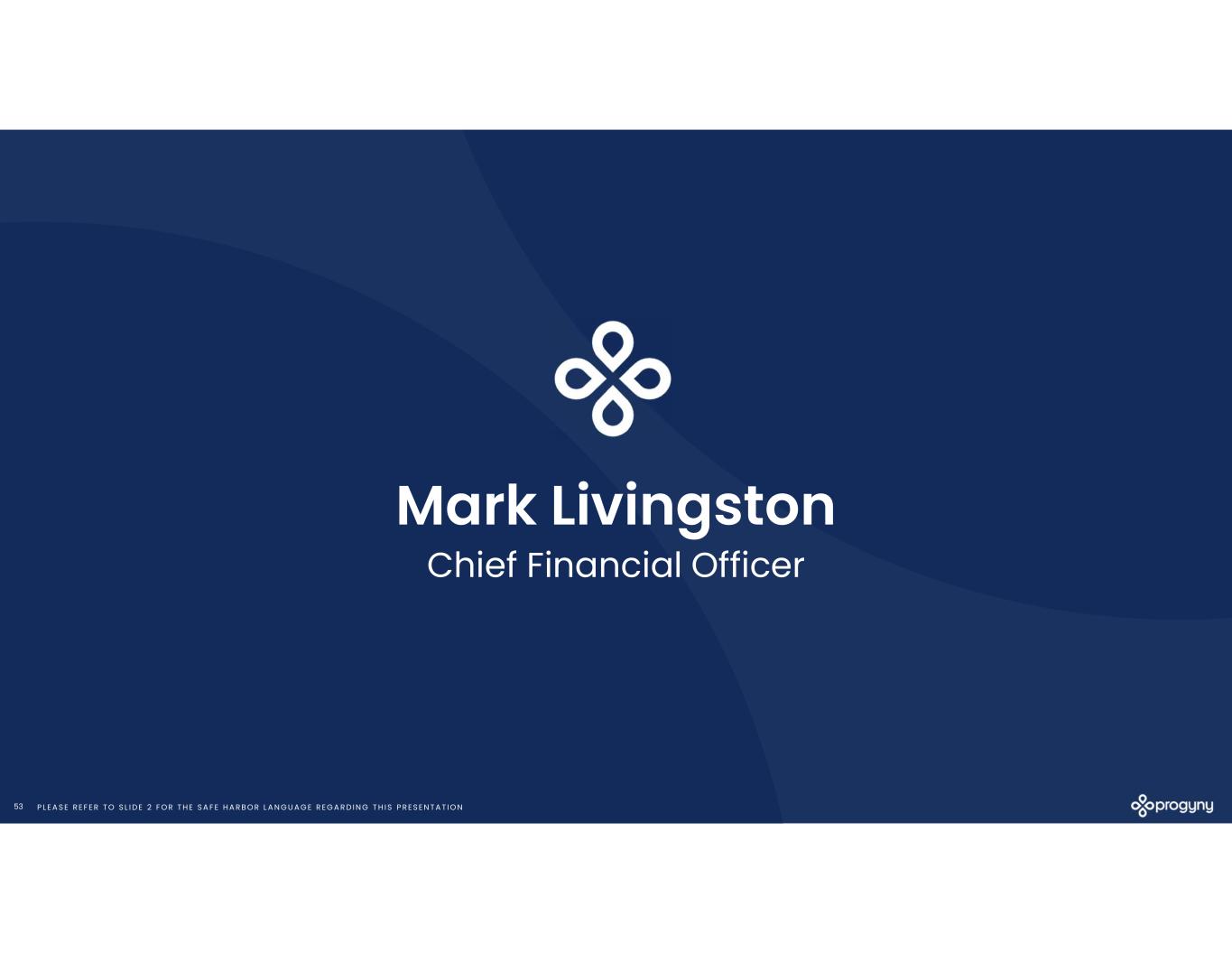 PL E A S E R E F E R T O S L I D E 2 F O R T H E A F E H A R B O R L A N G U A G E R G A R D I N G T H I S P R E N T A T I O N53 Mark Livingston 首席财务官