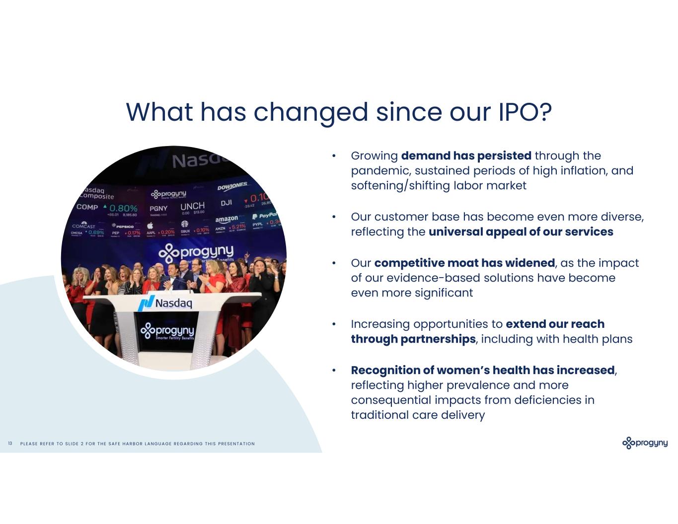 P L E A S E R E F E R T O S L I D E 2 F O R T H E S A F E H A R B O R L A N G U A G E R G A R D I N G T H I S P R E N T A T I O N13自我们首次公开发行股票以来发生了什么变化?•在大流行、持续的高通胀时期以及劳动力市场疲软/不断变化的过程中,需求持续增长•我们的客户群变得更加多样化,反映出我们服务的普遍吸引力•我们的竞争护城河已经扩大,因为我们循证解决方案的影响变得更加显着•通过伙伴关系(包括与健康计划)扩大我们的覆盖范围的机会增加•对妇女健康的认可有所增加,这反映出更高的流行率以及传统护理提供不足带来的更重要的影响