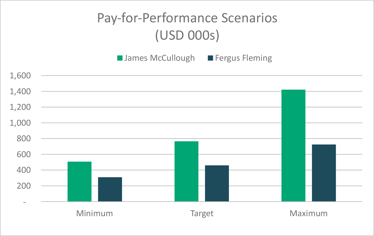 年度绩效奖金:就2024/2025年度而言,执行董事的年度现金奖金目标支出仍由委员会确定,并将在明年的报告中披露。委员会在决定授予执行董事的最终奖金数额时,会考虑整体公司业绩和个人业绩。绩效将根据委员会在年初设定的目标进行测试,该目标将包括公司目标和James McCullough和Fergus Fleming的个人目标。