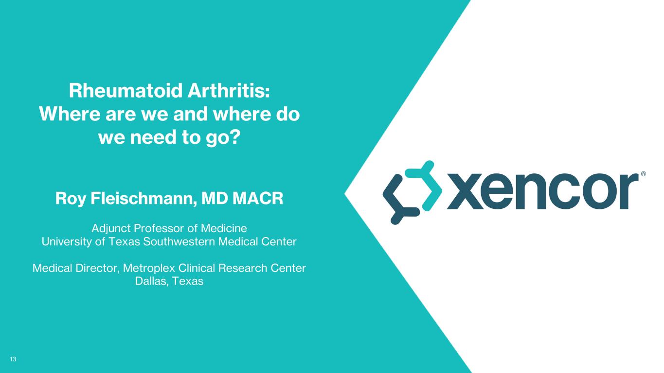 13 ®类风湿关节炎:我们在哪里,需要去哪里?Roy Fleischmann,医学博士MCR兼职教授德克萨斯大学西南医学中心医学主任,Metroplex临床研究中心,德克萨斯州达拉斯