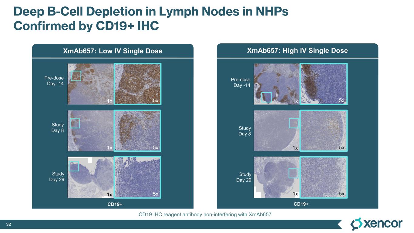 32 XMAB657:高IV单剂量XMAB657:低IV单剂量给药前第14天研究第8天研究第29天CD19 + 1x 5x 5x 5x 5x1x 1x 1x 5x 5x 5x 1x 5x1x 1x NHP淋巴结中的深B细胞耗竭经CD19 + IHC给药前第14天研究第8天研究第29天CD19 + CD19丨IHC 丨IHC试剂抗体不干扰XMAB657