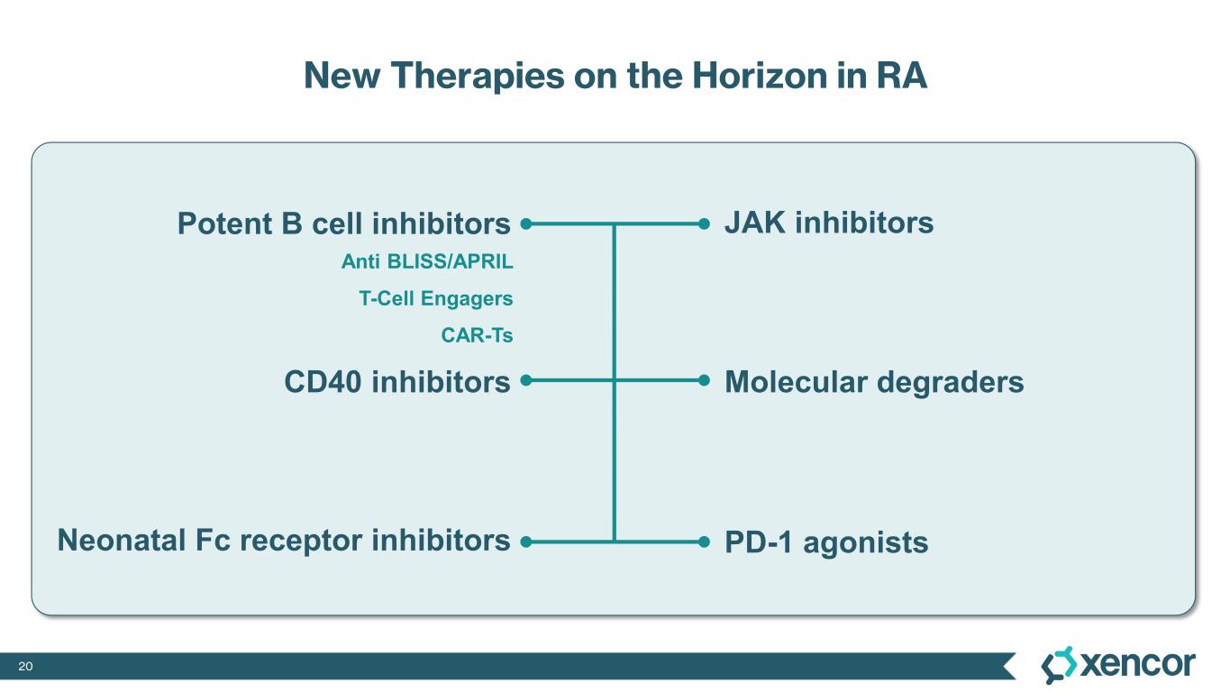 RA JAK抑制剂地平线上的20种新疗法分子降解剂强效B细胞抑制剂抗BLISS/APRIL T细胞接合剂CAR-TS PD-1激动剂新生儿FC受体抑制剂CD40抑制剂