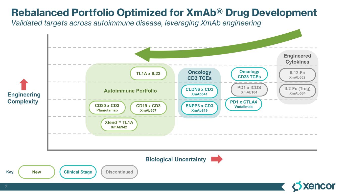 7个针对XMAB ®药物开发优化的重新平衡组合验证了跨越自身免疫性疾病的靶点,利用XMAB工程复杂性生物不确定性已终止新临床阶段CD20 x CD3 Plamotamab XTend TL1A XMAB942肿瘤CD28 TCE PD1 x ICOS XMAB104 PD1 x CTLA4 Vudalimab自身免疫组合TL1A x IL23肿瘤CD3 TCE工程化细胞因子CD19 x CD3 XMAB657 CLDN6 x CD3 XMAB541 ENPP3 x CD3 XMAB819 IL12-FC XMAB662 IL2-FC(treg)XMAB564关键
