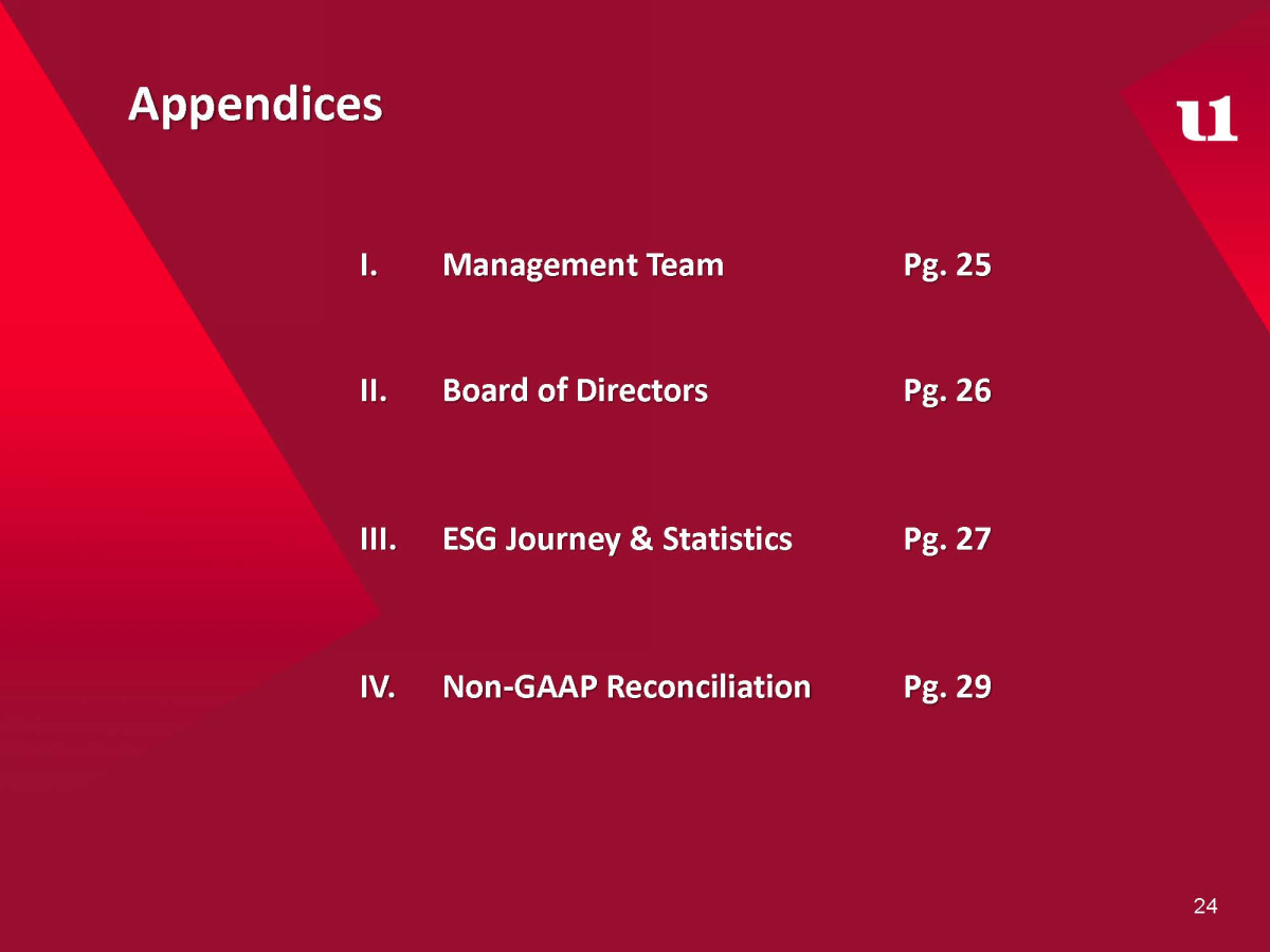 24一、二。iii.iv.管理团队董事会ESG旅程和统计非GAAP对账pg。25页。26页。27页。29附录