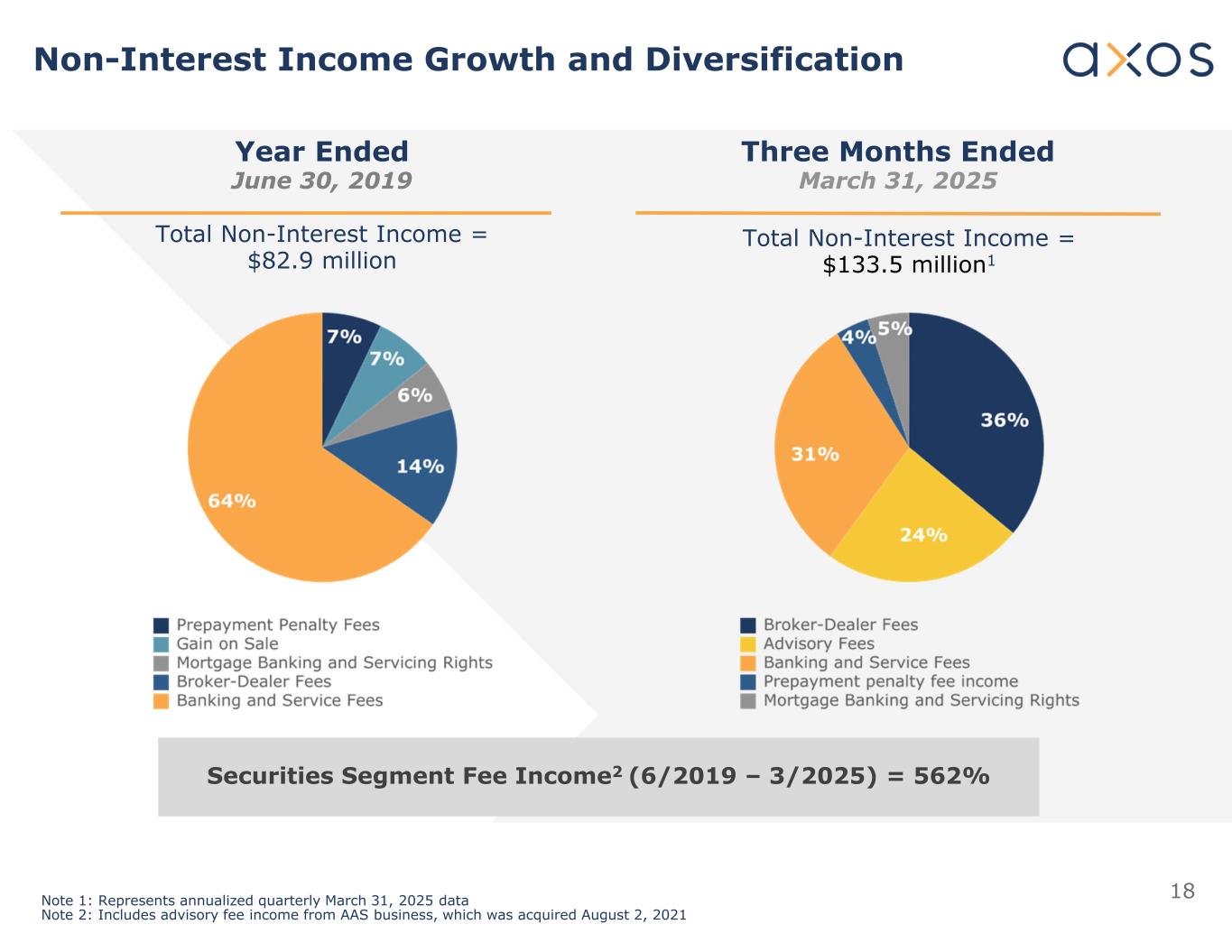 18非利息收入增长和多元化截至2019年6月30日止年度截至2025年3月31日止三个月证券分部费用收入2(6/2019–3/2025)= 562%非利息收入总额= 8290万美元非利息收入总额= 1.335亿美元1注1:代表2025年3月31日季度年化数据注2:包括2021年8月2日收购的AAS业务的咨询费收入