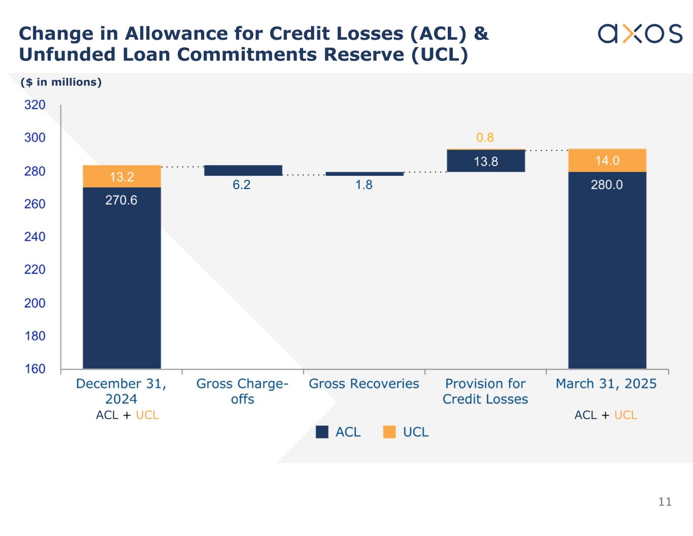 11信用损失准备金(ACL)&无资金贷款承诺准备金(UCL)变动(百万美元)ACL + UCL ACL + UCL 6.2
