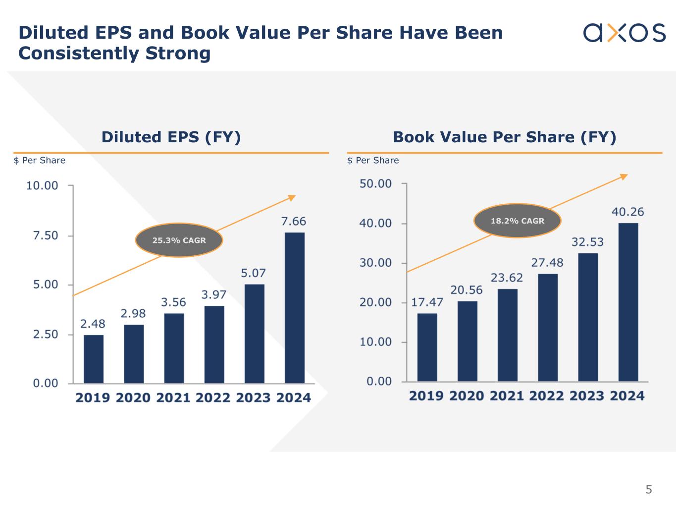 4 PercentilePeer Group1Axos银行93% 0.54% 1.71% ROAA 93% 5.22% 17.13%股本回报率28% 2.39% 2.00% NIE/Avg资产96% 2.55% 4.60%净利息收入6% 76.52% 42.32%效率比资料来源:截至2024年12月31日的统一银行业绩报告(UBPR);数据检索于2025年4月4日。注1:同业组为截至2024年12月31日季度资产超过10亿美元的所有储蓄银行。与银行同行相比,Axos表现最佳。93%的ROE意味着该银行的表现优于所有银行的93%。6%的效率比排名意味着,与营收相比,只有6%的银行的费用更低。