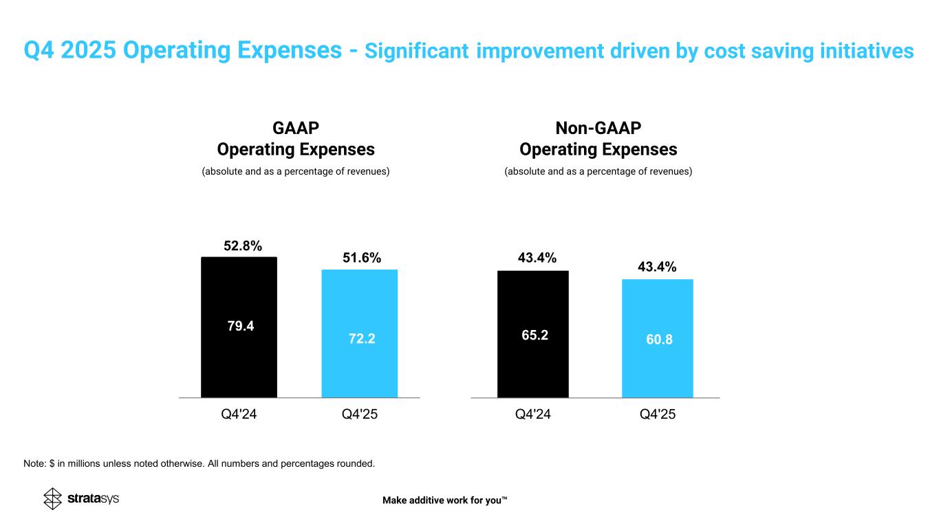 GAAP营业费用(绝对值和占收入的百分比)非GAAP营业费用(绝对值和占收入的百分比)79.47 2.25 1.6% Q4‘24 Q4’25 52.8% 65.26 0.8Q4‘24 Q4’25 43.4% 43.4%注:百万美元,除非另有说明。所有数字和百分比四舍五入。Make additive work for you Q4 2025 Operating Expenses-Significant improvement driven by cost saving initiatives