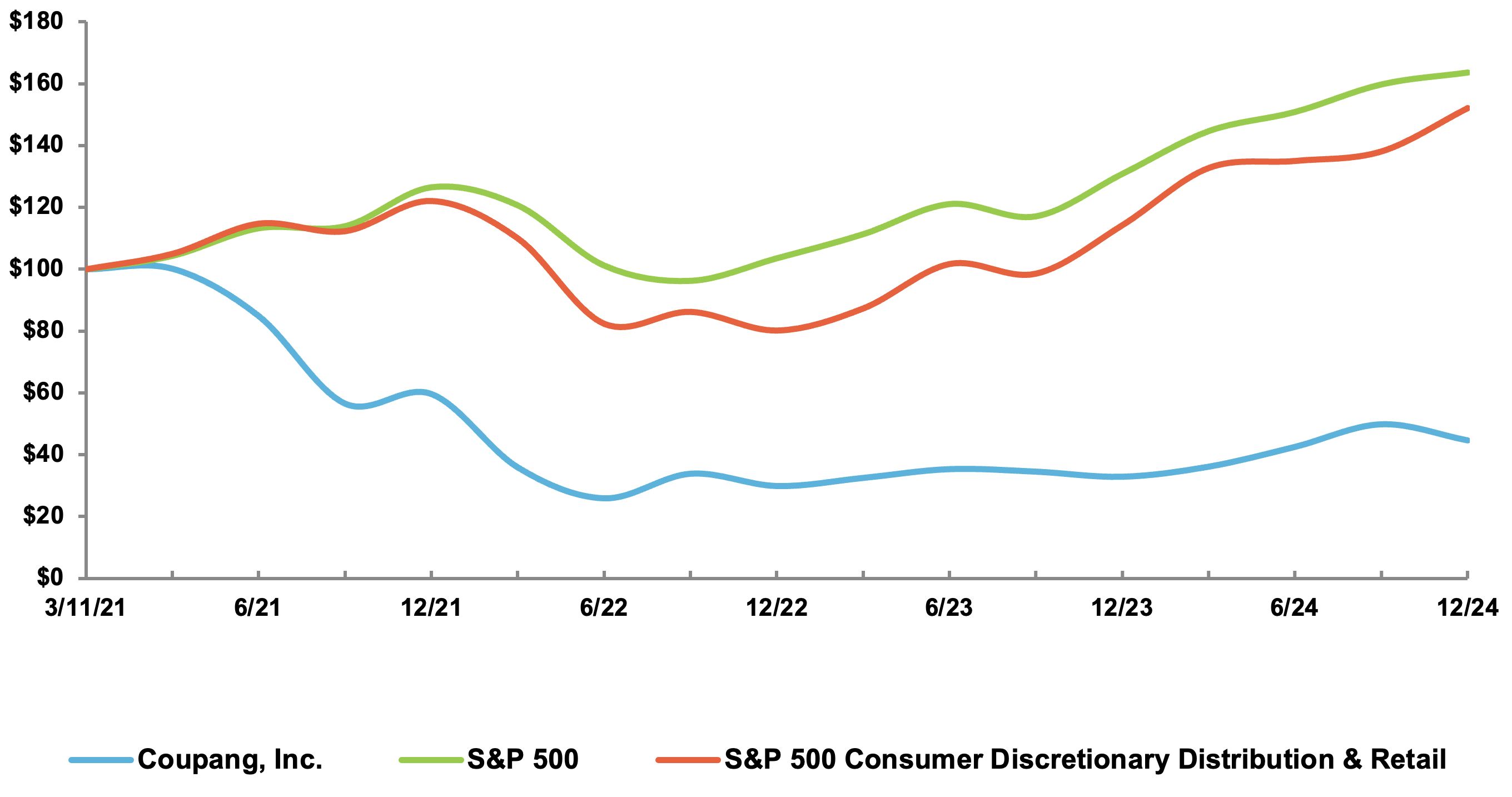反映了我们的A类普通股相对于标准普尔500非必需消费品分销和零售指数的累计TSR(“标普 500指数可选消费分销与零售”),这是我们在2024年年度报告中的绩效图表中包含的指数。