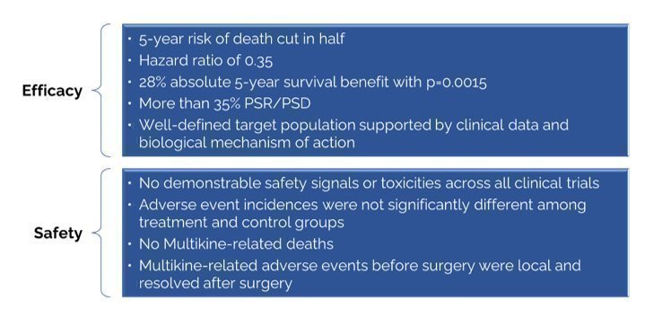 Multikine,一种正在开发的研究性免疫疗法,用于某些头颈部癌症的潜在治疗;以及