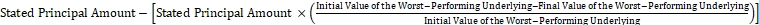 如果表现最差的标的的终值低于其门槛值,就每张票据而言,您持有的到期付款将低于每张票据规定的本金金额,该金额将等于: