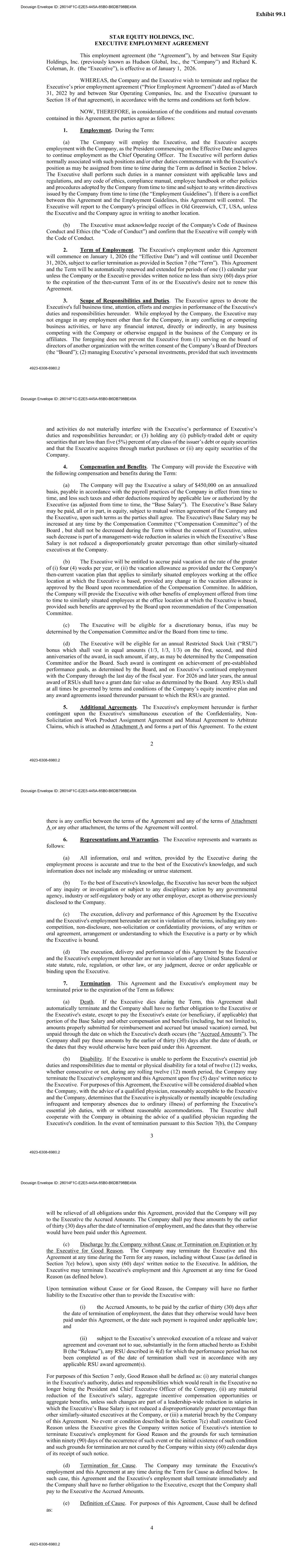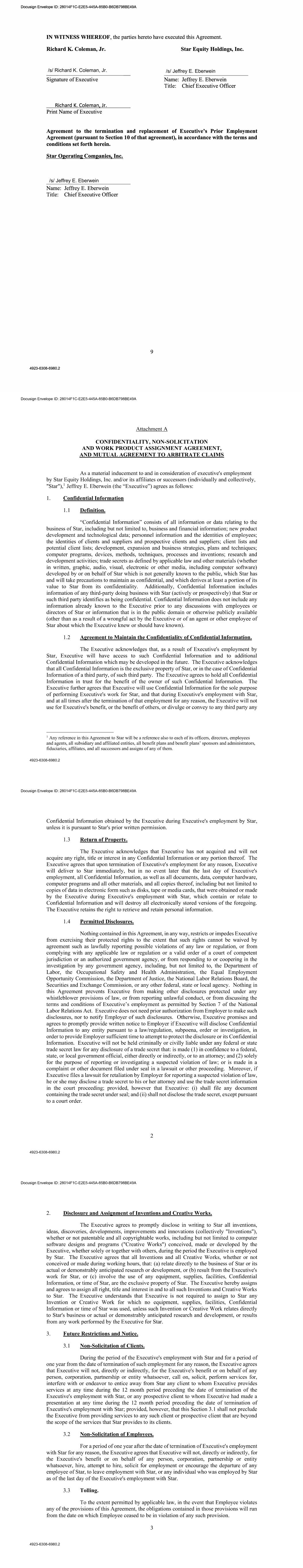 Docusign信封ID:28014F1 C-E2E5-445A-85B0-B6DB798BE49A作为证人,本协议双方已签署本协议。Richard K. Coleman, Jr.执行人员签名TERM0打印执行人员姓名Star Equity Holdings, Inc.姓名:Jeffrey E. Eberwein职务:首席执行官同意根据此处规定的条款和条件终止和更换执行人员的先前雇佣协议(根据该协议第10节)。Star Operating Companies,Inc.名称:Jeffrey E. Eberwein职务:首席执行官4923-6308-6980.29/s/Richard K. Coleman, Jr./s/Jeffrey E. Eberwein