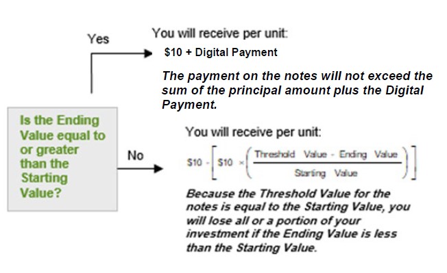 到期票据上没有固定的本金偿还金额。如果期末值小于起始值,您将损失全部或部分本金。