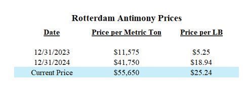 United States Antimony Corporation公布创纪录的2024财年业绩