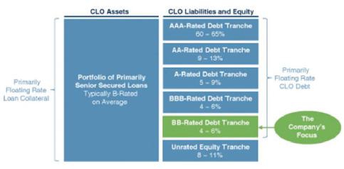 我们是一家外部管理、非多元化的封闭式管理投资公司,已根据经修订的1940年《投资公司法》或“1940年法”注册为投资公司。我们的首要投资目标是产生高额当期收益,次要目标是产生资本增值。我们寻求通过主要投资于股权和初级债务部分的抵押贷款债务或“CLO”来实现我们的投资目标,这些债务由主要由投资级别以下的美国高级担保贷款组成的投资组合进行抵押,这些贷款在各个行业部门拥有大量不同的基础借款人。我们还可能投资于我们的投资顾问认为与我们的投资目标一致的其他相关证券和工具或其他证券和工具,包括CLO的高级债务部分、贷款积累便利或“LAF”,以及由其他证券化工具发行的证券,例如信用挂钩票据和抵押债券义务或“CBO”,以及合成投资,例如由银行或其他金融机构发行的重大风险转移证券和信用风险转移证券。LAF是通常由银行提供的中短期便利,将作为CLO交易的配售代理或安排人。在CLO定价之前,LAF通常会产生四到六倍的杠杆。我们主要寻求投资的CLO证券没有评级或评级低于投资级别,在及时支付利息和偿还本金方面被认为是投机性的。未评级和低于投资级别的证券有时也被称为“垃圾”证券。此外,我们投资的CLO股权和初级债务证券的杠杆很高(CLO股权证券通常是十倍杠杆),这放大了我们在这类投资上的损失风险。请参阅随附招股说明书中的“风险因素-与我们的投资相关的风险-我们可能会利用我们的投资组合,这将放大投资金额的潜在收益或损失,并将增加投资于我们的风险”。
