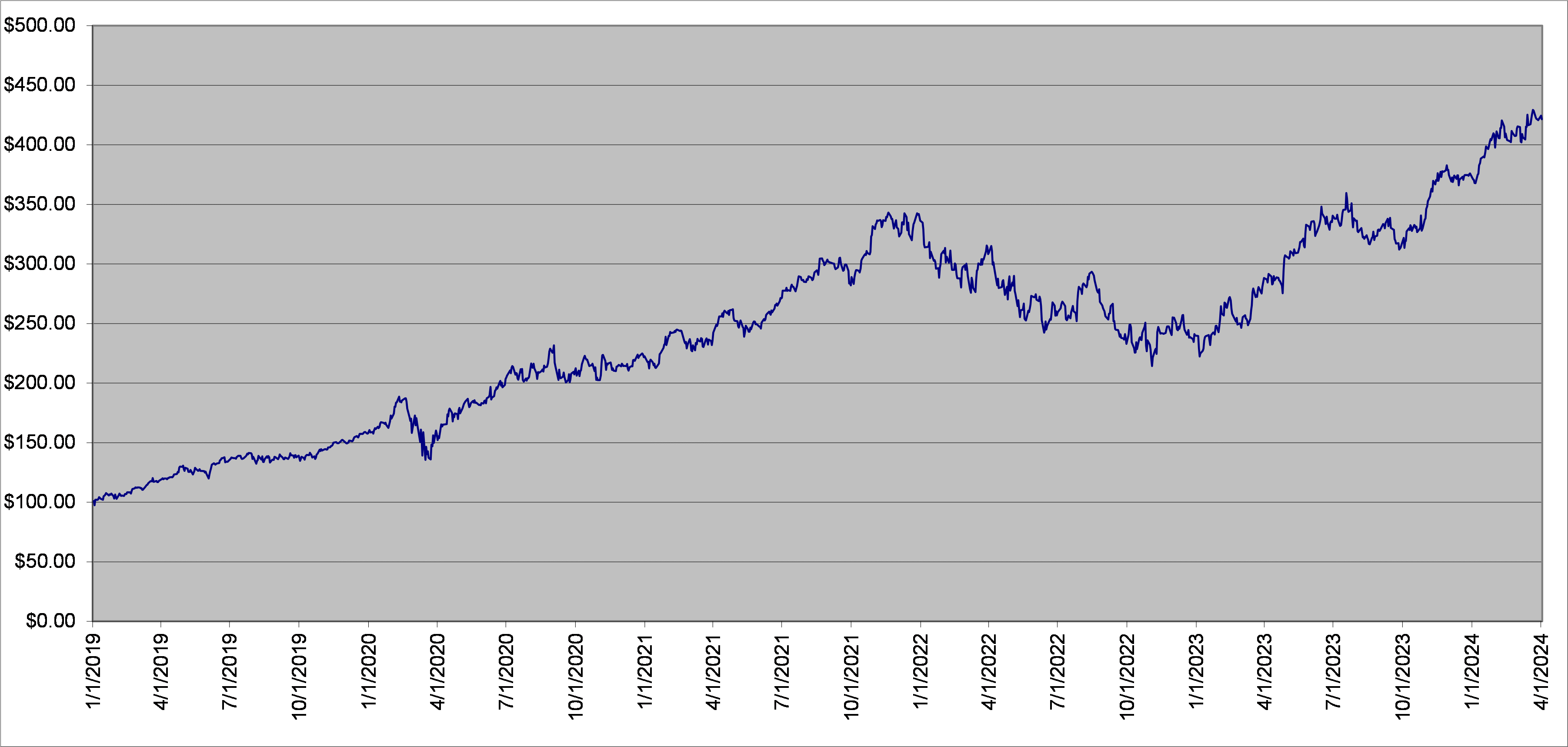 | 微软公司的普通股–每日股票收盘价 2019年1月1日至2024年4月2日 |