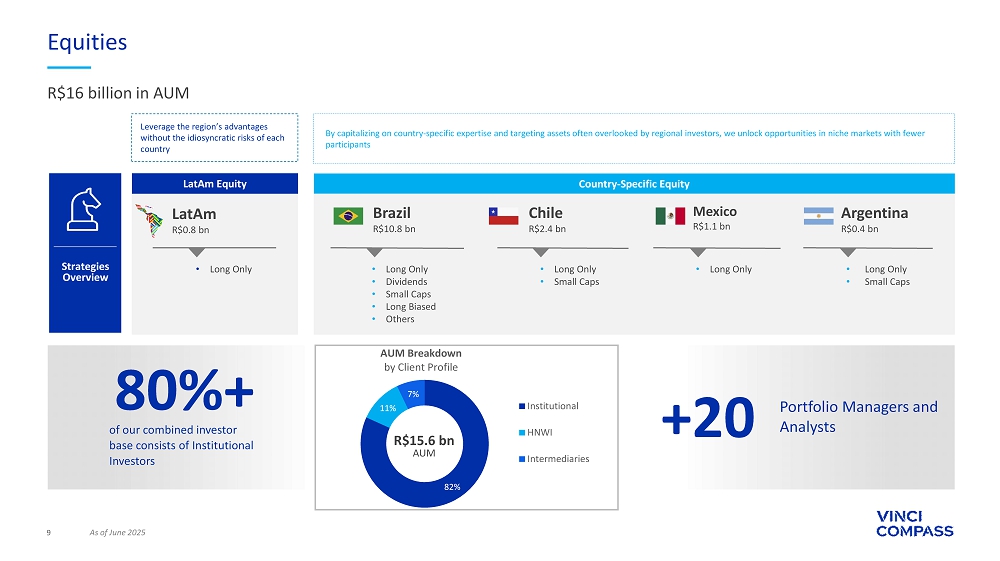 982% 11% 7% AUM按客户情况细分机构高净值中介机构股票巴西108亿雷亚尔•只做多•股息•小型股•多头偏向•其他智利24亿雷亚尔•只做多•小型股策略概览墨西哥11亿雷亚尔•只做多拉美8亿雷亚尔•只做多拉美股票阿根廷4亿雷亚尔•只做多•小型股国别特定股票通过利用国别特定专业知识并瞄准经常被区域投资者忽视的资产,在没有每个国家特有风险的情况下发挥该地区的优势,我们在参与者较少的利基市场解锁机会我们合并后的投资者基础的80% +由机构投资者+ 20名投资组合经理和分析师组成,截至2025年6月,AUM为160亿雷亚尔,AUM为156亿雷亚尔