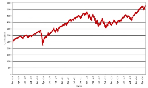 | 标普 500®指数每日收盘水平 2019年1月1日至2024年5月15日 |