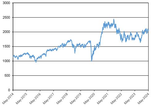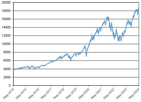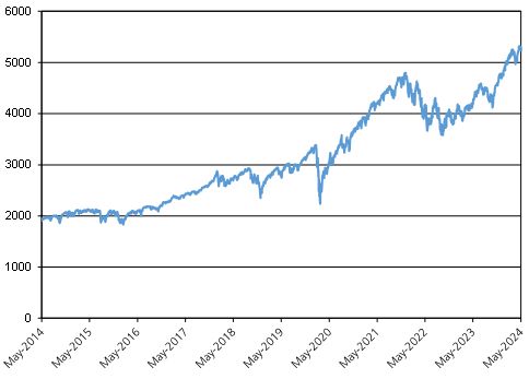 下图展示了SPX在2014年5月31日至2024年5月31日期间的表现。