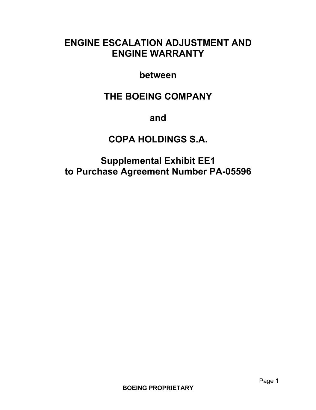 第1页波音公司与COPA HOLDINGS S.A.之间的专有发动机升级调整和发动机保修补充附件 EE1购买协议编号PA-05596