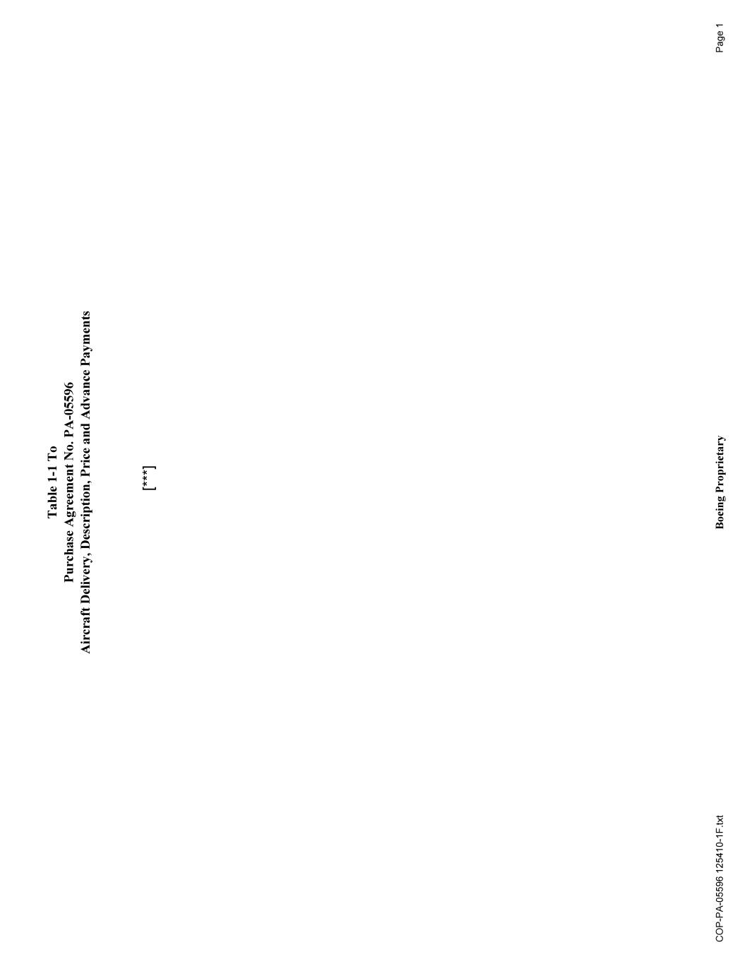 T ab le 1 t o p u rc h as e a gr ee m en t n o。p a-0 5596 a ir cr af t d el iv er y,d es c r ip ti on,p ri ce a n d a d va nc e p ay m en ts c o p-p a-0 5596123270-1 f.t xt b oe in g p ro p ri et ar y p a ge 1