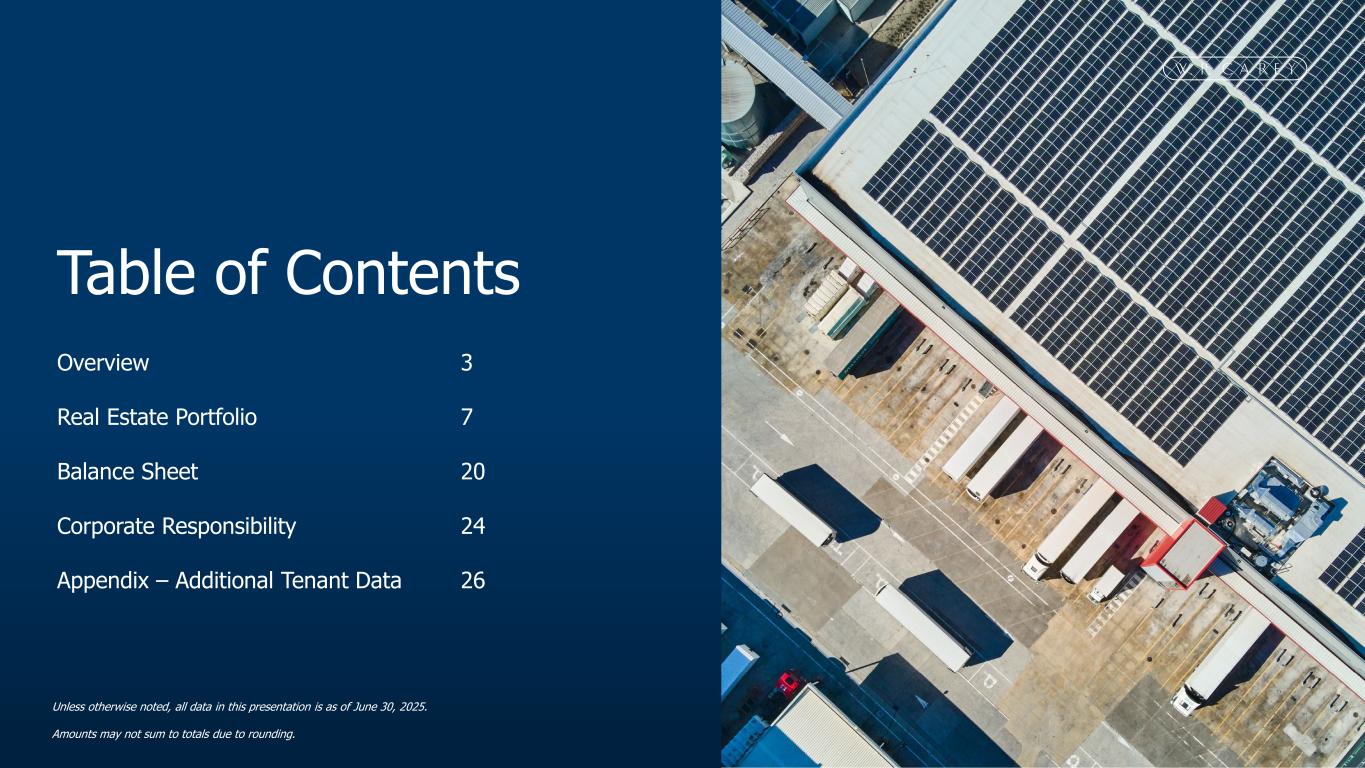 目录除非另有说明,本演示文稿中的所有数据均截至2025年6月30日。由于四舍五入的原因,金额总和可能不等于总数。概览房地产投资组合资产负债表企业责任附录–额外租户数据37202426
