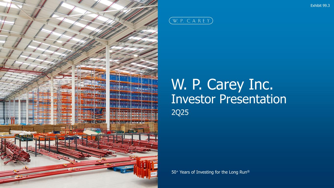 50 +年投资为长远®2Q25 W. P. Carey Inc.投资者说明会附件 99.3