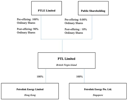 PTL Limited于2023年12月29日注册成立。就注册成立事项而言,于注册成立同日,PTL Limited向其唯一股东PTLE Limited发行合共1股普通股,代价为1美元。于2024年7月11日,公司按11,250,000股的比例将其已发行及已发行股份进行股份分割(“股份分割”),从而有11,250,000股已发行及于股份分割后流通的普通股,由PTLE Limited持有。从英属维尔京群岛的法律角度来看,股份分割在生效日期之前对我们的股份没有任何追溯效力。然而,本招股章程中对我们普通股的提述是在股份拆分后的基础上提出的,或作为已追溯调整和重述以使股份拆分生效,就好像股份拆分已在相关的较早日期发生一样。