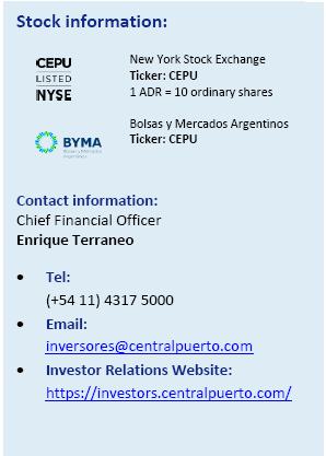 本文中使用的定义和术语在本文档末尾的词汇表中提供。本新闻稿不包含公司的所有财务信息。因此,投资者应结合Central Puerto截至2024年9月30日止的合并财务报表及其附注阅读本新闻稿,这些报表将可在公司网站上查阅。