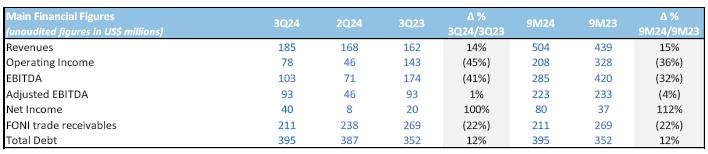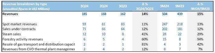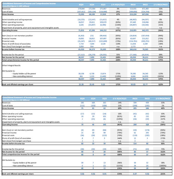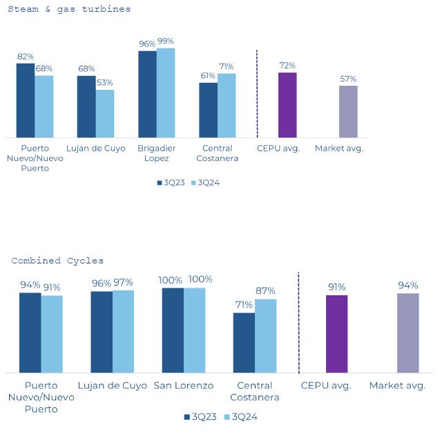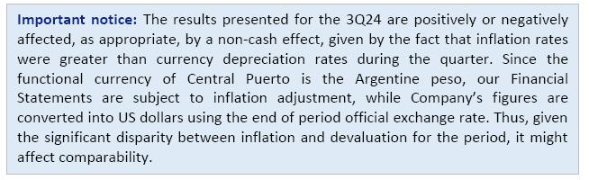 下表列出了与2Q24和3Q23相比,Central Puerto集团在2024年第三季度的主要运营指标: