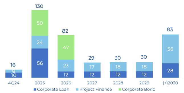 下表显示了公司截至2024年9月30日的本金到期情况,单位为百万美元: