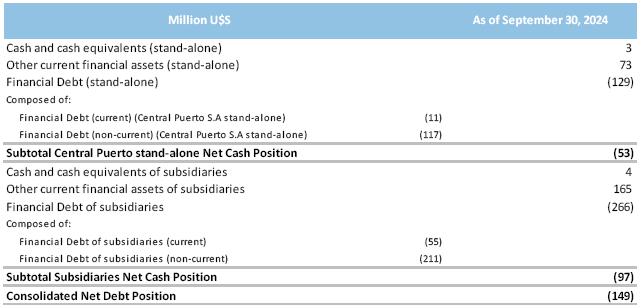 下图对Central Puerto(单独计算)及其子公司的净债务头寸进行了细分: