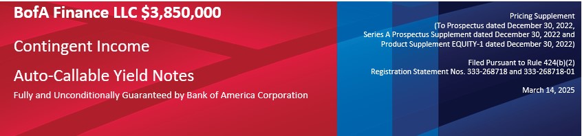 票据的所有付款均须承担BoFA Finance LLC(“BoFA Finance”或“发行人”)作为票据发行人及美国银行股份有限公司(“BAC”或“担保人”)作为票据担保人的信用风险。