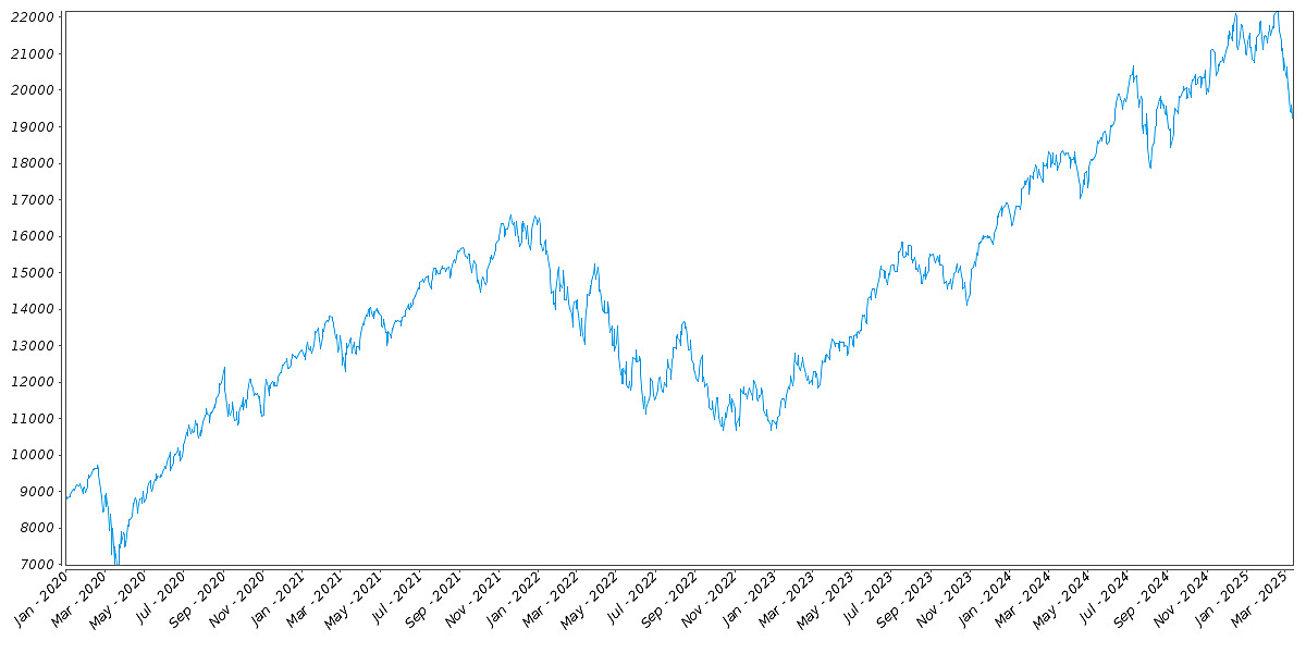 NDX:19704.63,为起始值的100.00%。