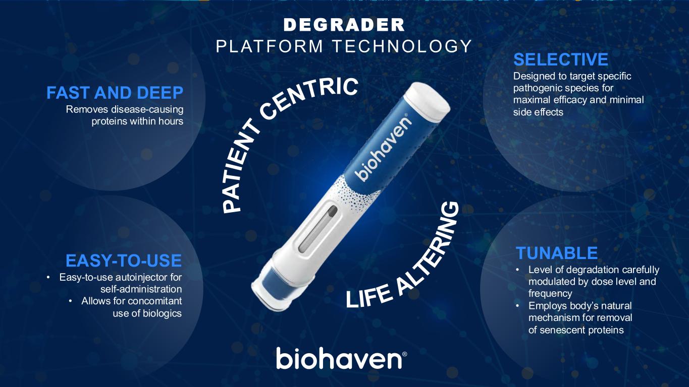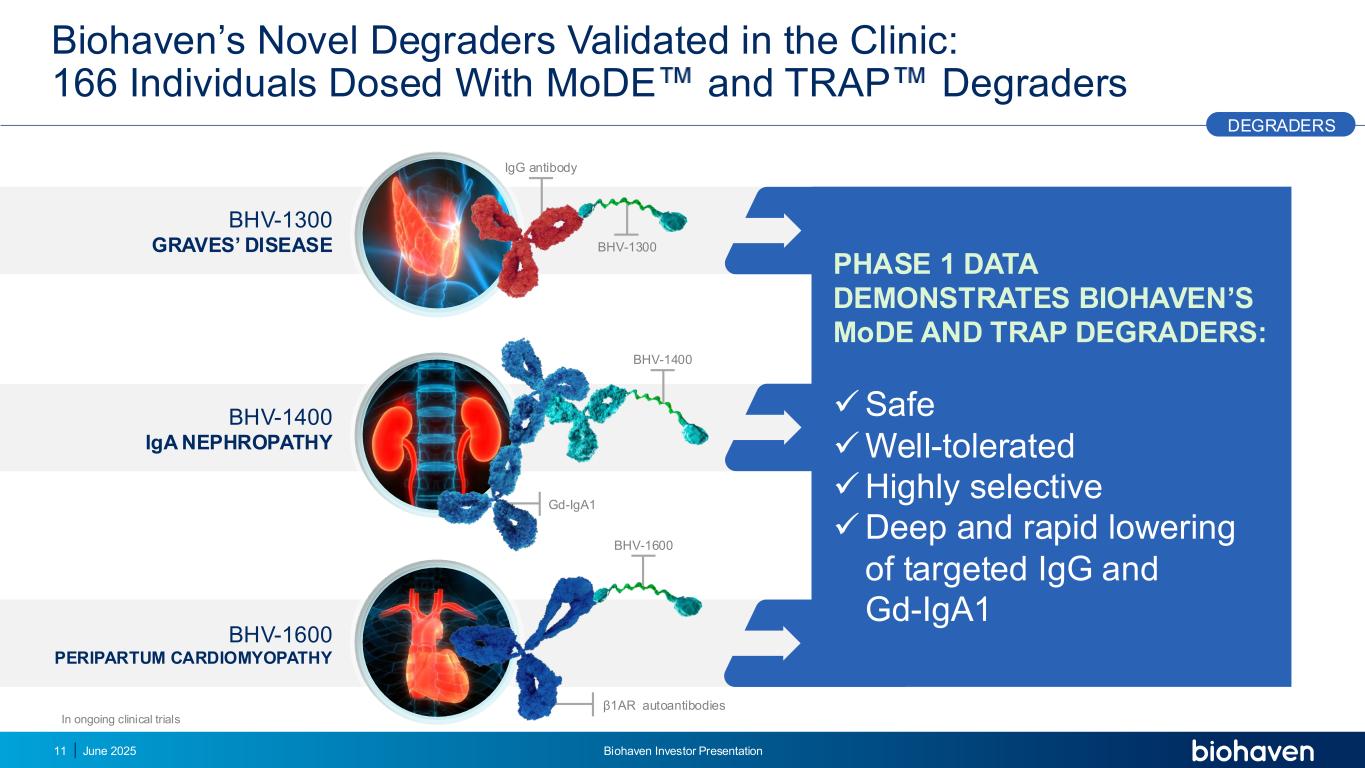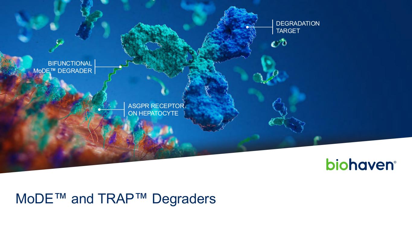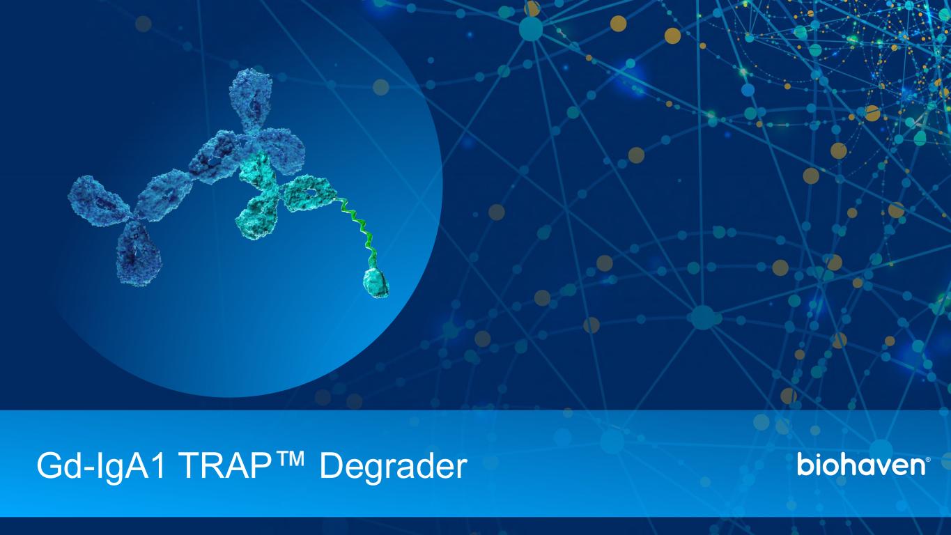 Gd-IGA1 IgG抗体BHV-1300 TRAPMODER我们的新型DEGRADER平台革命性的耶鲁许可技术,可从身体关键点去除致病蛋白,靶向一类与疾病发病机制有关的蛋白质,去除特定的致病蛋白,保持免疫系统其余部分完好无损2025年6月7日Biohaven投资者介绍DEGRADERS