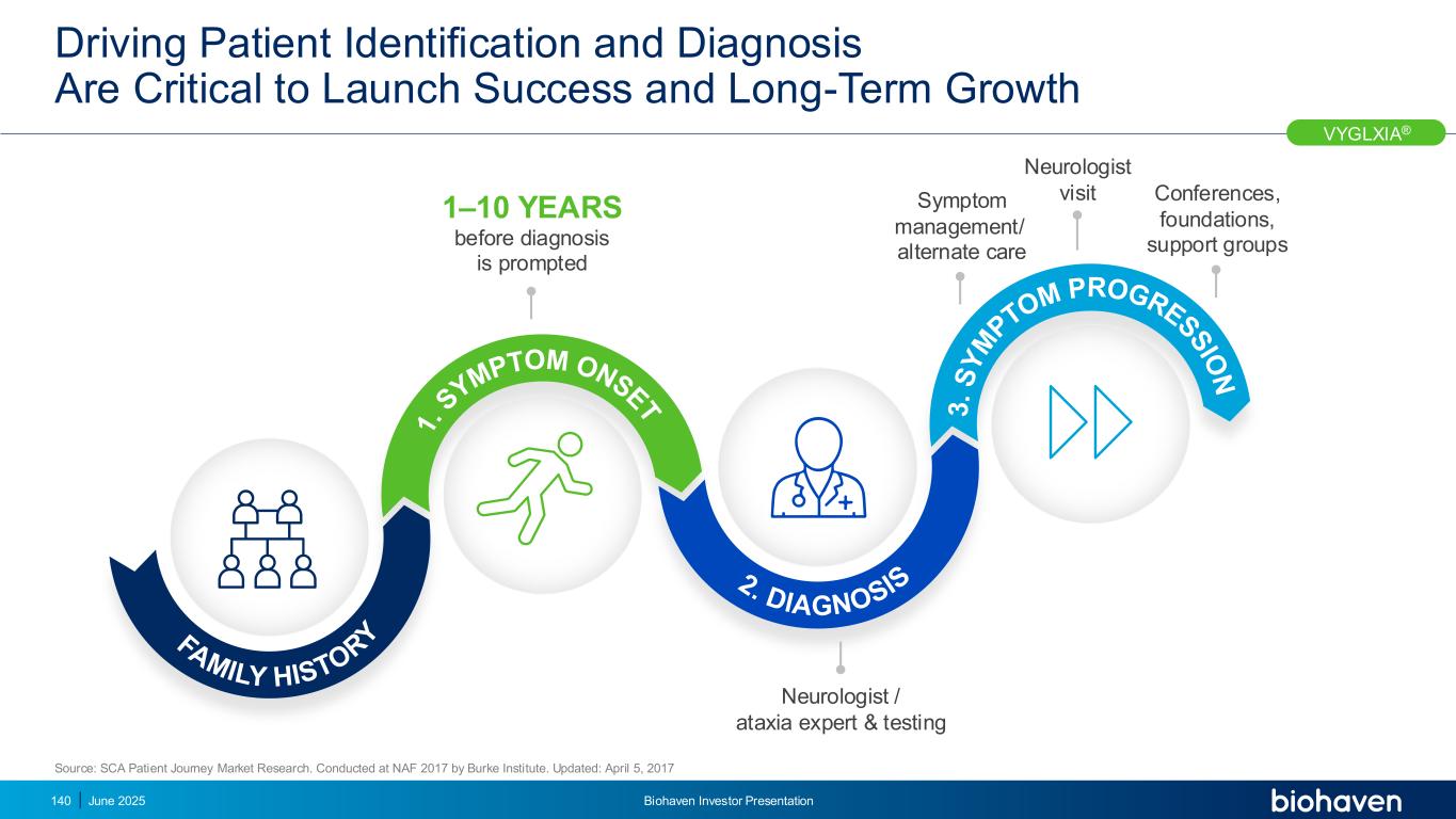 战略要务驱动SCA成功上市识别患者,驱动早期诊断建立VYGLXIA®作为SCA中的SOC创建访问和报销确保持续治疗01020304 SCA启动优先事项SCA启动依赖于识别患者和驱动诊断关键点VYGLXIA®1392025年6月Biohaven投资者说明会