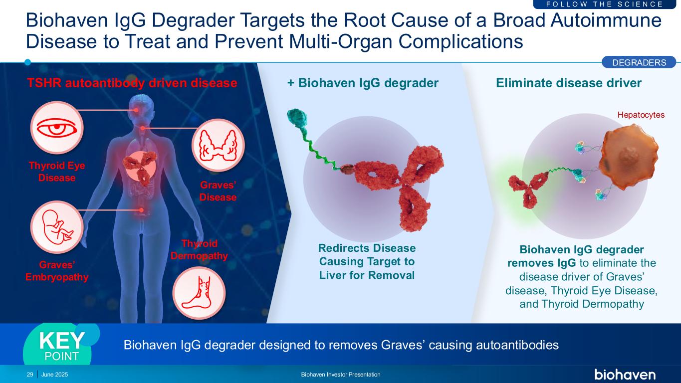 肝细胞Biohaven IGG降解剂靶向广泛自身免疫性疾病的根本原因治疗和预防多器官并发症2025年6月丨Biohaven投资者说明会29将致病靶点重定向至肝脏切除+ BiohavenBiohaven IGG降解剂TERM3 IGG降解剂去除IGG消除Graves病的疾病驱动因素甲状腺眼病、甲状腺皮病消除疾病驱动因素F O L L O W T H E S C I E N C E甲状腺眼病甲状腺皮病Graves病Graves病Graves的胚胎病TSHR自身抗体驱动疾病降解剂旨在去除Graves