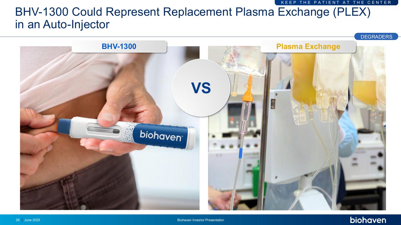 BHV-1300等离子体交换BHV-1300可代表自动注射器DEGRADERS K E E P T H E P A T I E N T A T H E C E N T E R VS 2025年6月26日Biohaven投资者介绍