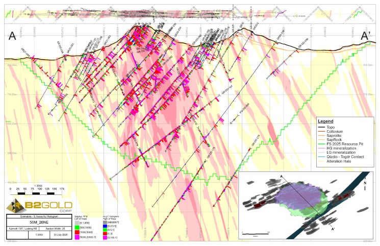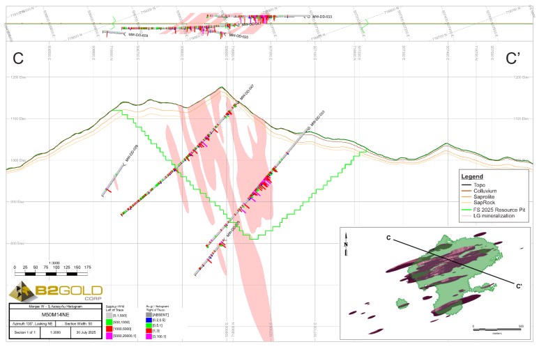 前瞻性陈述不是,也不可能是对未来结果或事件的保证。前瞻性陈述基于(其中包括)意见、假设、估计和分析,这些意见、假设、估计和分析虽然在提供前瞻性陈述之日被认为是合理的,但本质上受到可能导致实际结果和事件与前瞻性陈述明示或暗示的结果和事件存在重大差异的重大风险、不确定性、或有事项和其他因素的影响。B2Gold在得出前瞻性陈述中所列结论或作出预测或预测时确定并应用的重大因素或假设包括但不限于:本报告第1.12、14.13和25.6节确定的可能影响矿产资源估算的因素;本报告第13节确定的冶金回收假设;本报告第1.19、1.20、21.3和22.1节确定的与2025年可行性研究相关的因素;本报告第1.22节确定的项目风险和机会;稀释,矿石损失和采矿回收假设;关于库存的假设;采矿、加工、勘探和开发活动的成功;地质、采矿和冶金估算的准确性;岩土工程假设;矿产资源估算中使用的假设;预期的商品价格和生产成本;没有重大的意外运营或技术困难;执行B2Gold的业务和增长战略,包括B2Gold的战略投资和举措的成功;如果需要,是否有额外融资;是否有勘探、开发人员,以及运营项目和正在进行的员工关系;获得任何所需的地面权利;与项目周边社区保持良好关系;没有与监管、环境、重新安置和社会许可事项、健康和安全事项有关的重大意外事件或变化;储备数量或等级减少;成本增加、延误、暂停,以及与资本项目建设相关的技术挑战;采矿期间的岩土工程和水文地质考虑与假设不同;没有对B2Gold财产所有权的争议;没有重大诉讼;某些税务事项;总体经济状况或金融市场状况(包括商品价格和外汇汇率)没有重大和持续的不利变化。
