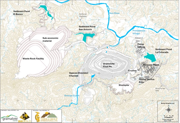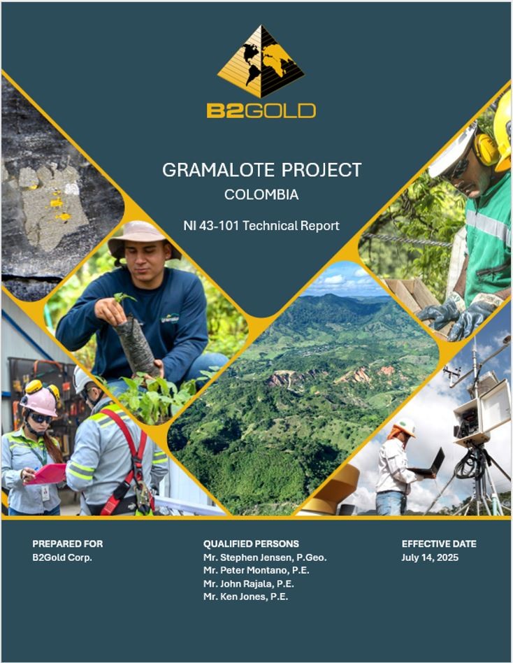 本National Instrument 43-101技术报告(报告)包含适用的加拿大和美国证券立法含义内的“前瞻性信息”和“前瞻性陈述”(统称为前瞻性陈述),包括但不限于B2Gold Corp.(B2Gold)的目标、战略、意图和期望;预测;展望;指导;预测;估计;以及有关未来或估计的财务和运营业绩、黄金生产和销售、收入和现金流以及资本成本和运营成本(包括预计现金运营成本和预算)的其他陈述;有关未来或估计的矿山寿命、金属价格假设、估计矿化材料品位、黄金回收率、剥离率、吞吐量、处理;关于预期的勘探、钻探、开发、建设、许可和其他活动或成果的声明;2025年可行性研究的结果和估计,包括生产和矿山寿命估计、资本成本和运营成本估计、财务预测、估计和结果,以及其中所载经济分析的其他结果;将现有推断矿产资源转换为指示类别的潜力;完成详细设计和来源设备的时机;将Gramalote开发为露天金矿的潜力以及与此相关的任何建设或其他决定;外部因素对收入的预期影响,例如商品价格、汇率和金属价格假设、矿产储量和矿产资源的估计、矿山寿命预测、复垦成本、经济前景;尾矿坝和储存设施、维护或提供所需的基础设施和信息技术系统,政府对采矿作业的监管以及签订开发和/或运营所需的重大合同;潜在的环境、物理、社会和经济影响以及解决这些影响的计划、措施和要求、环境考虑以及关闭和复垦规划;利益相关者参与;关于矿区“走廊”的法律诉讼;额外所需许可、修改和授权的接收和时间安排,包括与地表权有关的许可;对社区关系和社会经营许可的期望,包括与因项目开发和在项目区工作的手工和小型采矿者的重新安置有关的个人。本技术报告中所有涉及B2Gold预计在未来发生的事件或发展的陈述均为前瞻性陈述。前瞻性陈述是一种非历史事实的陈述,通常(尽管并非总是)由“预期”、“计划”、“预期”、“项目”、“目标”、“潜在”、“时间表”、“预测”、“预算”、“估计”、“打算”或“相信”等词语和类似表述或其负面含义,或事件或条件“将”、“将”、“可能”、“可能”、“应该”或“可能”发生。所有这些前瞻性陈述均基于B2Gold管理层截至做出此类陈述之日的意见和估计。本报告中的所有前瞻性陈述均受本警示性说明的限制。